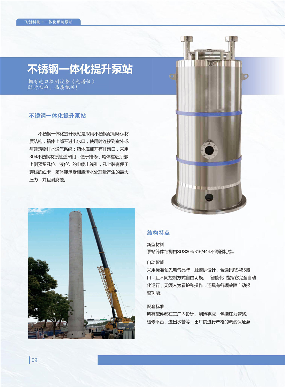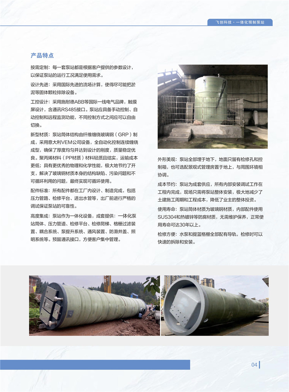 產(chǎn)品集成化程度高,安裝只要3步:①、挖基礎(chǔ);②、吊裝設(shè)備;③、接管調(diào)試回填。其中水泵、格柵和控制柜現(xiàn)場(chǎng)安裝