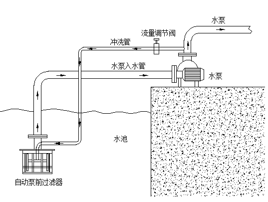 自動泵前過濾器安裝在水泵的吸水口處,可自動保護水泵免受碎片、碎石等固體狀污物堵塞影響。而且也保護了整個的水循環(huán)系統(tǒng),比如冷卻塔和熱轉換器??杀Wo整個系統(tǒng)和泵在工 作時不受管道堵塞的影響從而正常工作,進而可以延長泵及整個系統(tǒng)的運行壽命,而且確保 了泵實用高效的輸水。采用特殊設計的 PPS 自動泵前過濾系統(tǒng),可以幫助并保持泵和整個系統(tǒng)不被有機物/無機物碎 片、各類顆粒固體狀污物堵塞。自動泵前過濾系統(tǒng)與泵的出水口相接。這個過濾系統(tǒng)將被安裝在水下(包括循環(huán)水池、河水,水庫,蓄水池,海水等)。